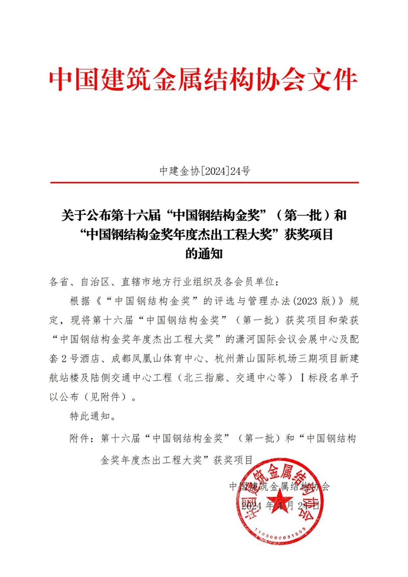 4月24日,重慶設(shè)計(jì)集團(tuán)所屬子企業(yè)重慶市建筑科學(xué)研究院有限公司監(jiān)理的兩江新區(qū)水土片區(qū)城鄉(xiāng)融合發(fā)展項(xiàng)目(二期)榮獲中國(guó)建筑鋼結(jié)構(gòu)行業(yè)工程質(zhì)量的最高榮譽(yù)獎(jiǎng)——中國(guó)鋼結(jié)構(gòu)金獎(jiǎng)。