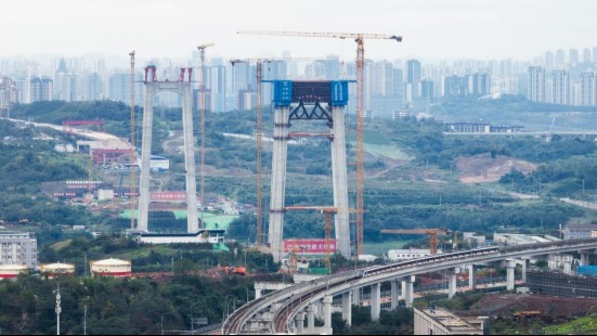 11月26日,隨著北岸主塔澆筑完成,由重慶市建筑科學研究院有限公司承擔監理的市級重點項目——渝長高速復線連接道工程(海騰立交—南橋頭立交)黃桷沱長江大橋主塔全部封頂,該橋是目前世界最大跨徑公軌兩用懸索橋。